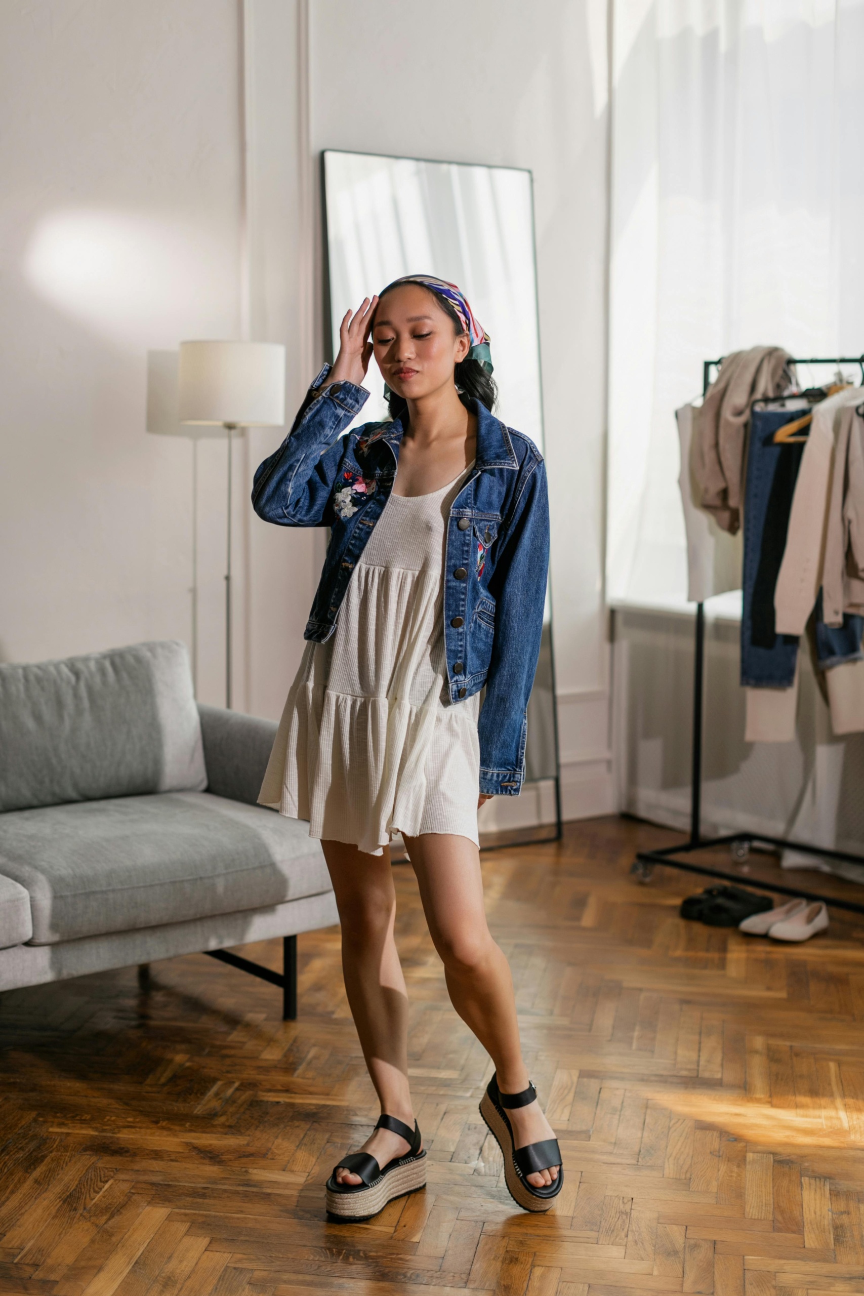 Vestito bianco a balze, fresco e femminile.